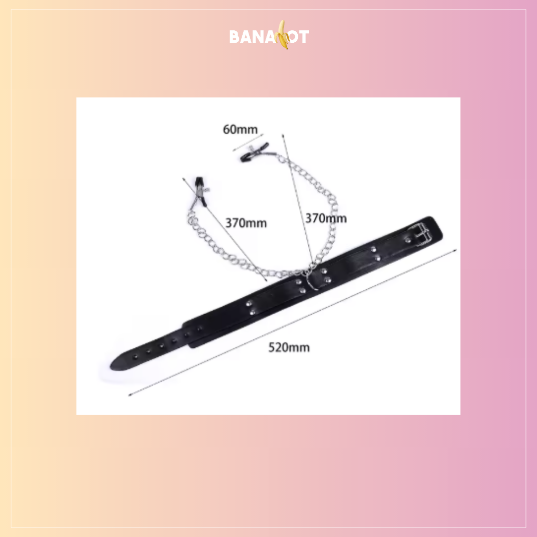 סט פטיש אלגנטי הכולל קולר צוואר עם שרשרת וקליפסים ייעודיים, למשחקי שליטה עדינים והעצמת החוויה האינטימית. מיועד לנשים ולזוגות שמעוניינים לגוון, לחקור תחושות חדשות ולהוסיף אלמנט מרגש של שליטה וחיבור.